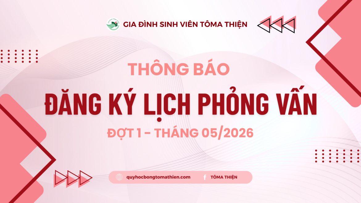 Trang chủ HỌC BỔNG TÔMA THIỆN THÔNG BÁO ĐĂNG KÝ LỊCH PHỎNG VẤN HỌC BỔNG VIÊN – ĐỢT 1 NĂM 2026
